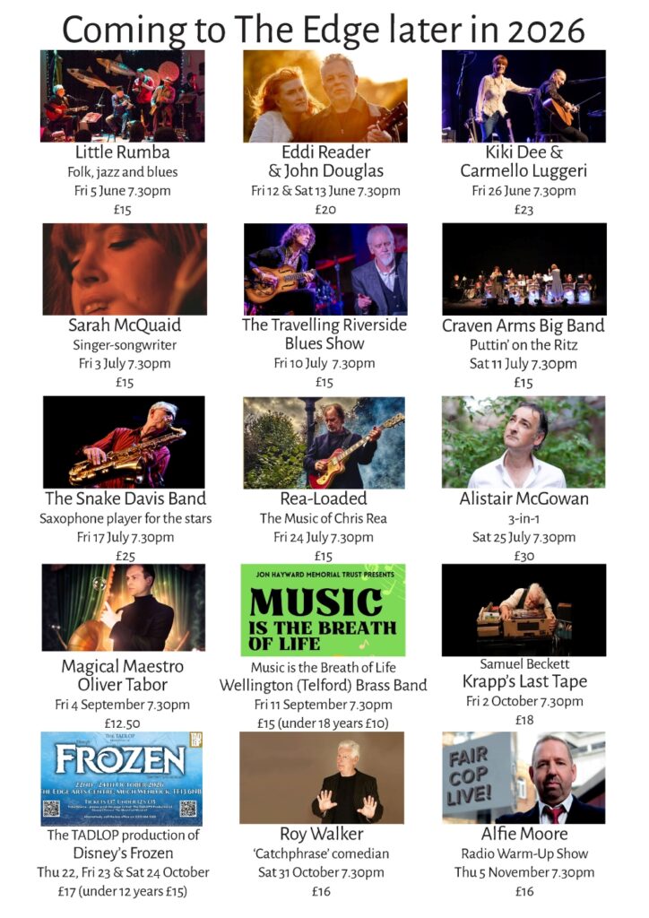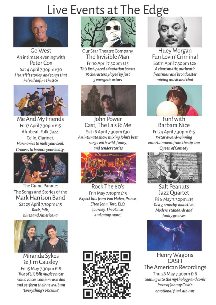 April - May 2026 brochure DOWNLOAD A COPY HERE Pick up your copy at our next event! Tickets available now at www.ticketsource.co.uk/edgeartscentre